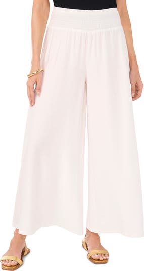 A smocked waistband enhances the comfort of lightweight pants cut in a breezy wide-leg silhouette.
