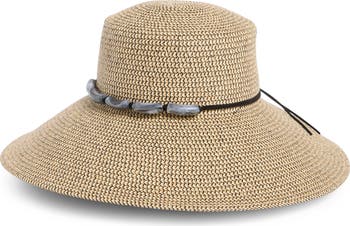 Soak up the sun in style with this straw hat featuring a shady brim and a ribbon-wrapped crown band for vacation-ready flair.