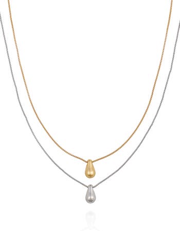 Molten teardrop pendants catch the light on this layered two-tone necklace that's perfect for everyday wear.