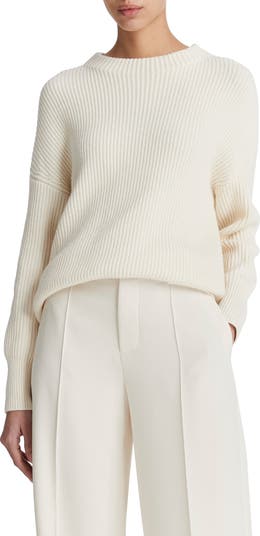 Cashmere-enriched cotton furthers the luxe look and feel of this funnel-sweater textured with fine ribbing.