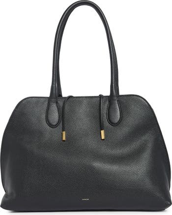 Carry your essentials in this slouchy textured-leather satchel featuring dual top handles and a minimal tie closure for easy access on the go.