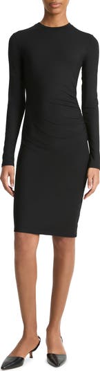 A bit of ruching eases the close fit of a knit staple dress that works for desk days or drinks dates.