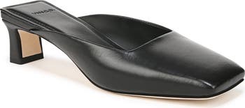 A sharp square toe amplifies the contemporary appeal of a streamlined leather mule set on a cushioned footbed and demi block heel.