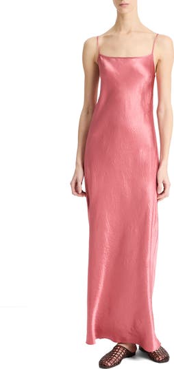 Exude light luxury in a casually crinkled satin slipdress made from feel-good fibers and oh-so-easy to style up or down.