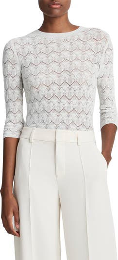Delicate, open-stitched cotton lace gives a refined look to a trim crewneck top you won't want to cover up.