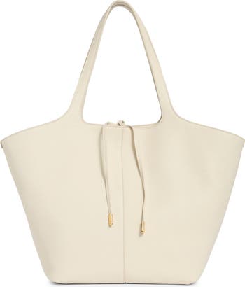 Carry your daily essentials in this roomy leather tote bag framed by dual shoulder straps and a structured base grounded by metallic feet.