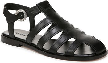 Geometric cutouts create a fisherman-inspired silhouette on a versatile leather sandal grounded by a cushioned footbed with optimal arch support.