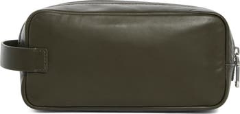 A smooth leather exterior looks sophisticated while adding durability to a dopp kit that easily stores toiletries, accessories and other small essentials.