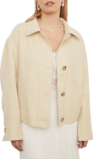 A breezy blend of organic cotton and lightweight linen make this jacket the easy choice for just-right layering on mild days and nights.