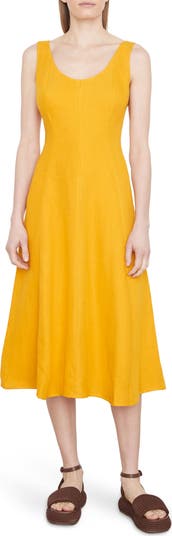 Well-placed seams add a soft swirl to a staple dress, cut from a linen-kissed fabric in a summery, sleeveless silhouette.