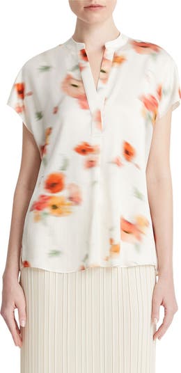 Softly focused blooms animate an unstructured top cut from pure, luxe silk.