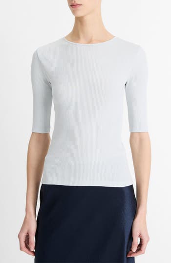 A ribbed-to-fit cotton top is designed with elbow-length sleeves for a bit of extra arm coverage.