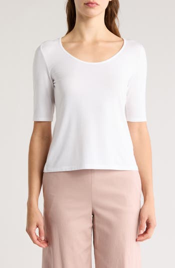 Refresh your essentials with this scoop-neck elbow-sleeve T-shirt constructed from soft, breathable modal-blend jersey.