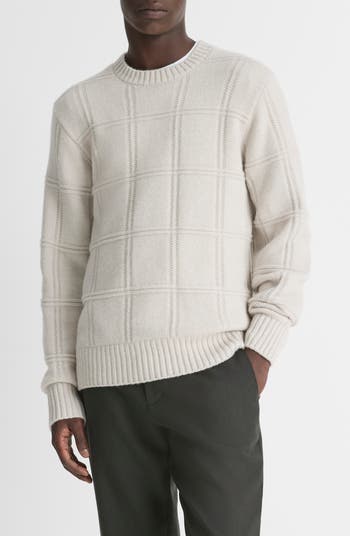 The timeless windowpane pattern is rendered in fine seed stitching that gives this soft and cozy lambswool sweater just-right depth and dimension that looks great whether you wear it casually or more styled up.