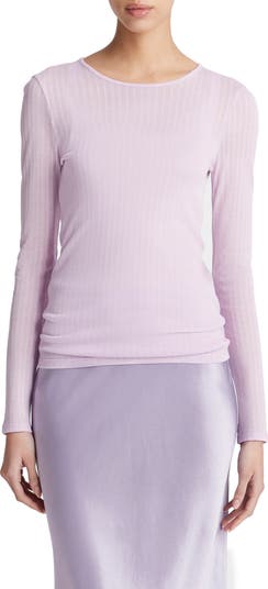 A semisheer ribbed knit creates a curve-hugging fit in this long-sleeve top that's the perfect layering addition to your wardrobe.