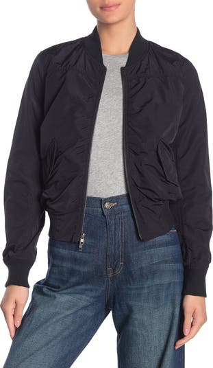 A shrunken silhouette updates this washed crop bomber jacket that's a versatile must-have layering piece. Fit: this style fits true to size.