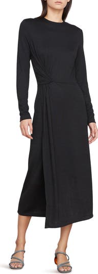 An unexpected side twist shapes this sophisticated knit midi designed in a flattering A-line silhouette.