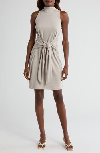 Supersoft Pima cotton ensures a comfortable all-day fit in this work-to-weekend mock-neck sleeveless dress with a defining waist-tie detail.