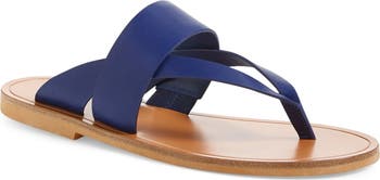 A wide crossover vamp strap upgrades a classic thong sandal cast in supple Italian leather and set on a flat, flexible rubber sole.