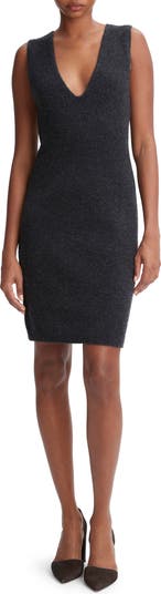 A low-dipping neckline fronts this woolly sleeveless sweater-dress.