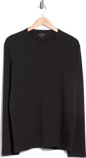 A washed finish lends lived-in appeal to a crewneck T-shirt made from pure cotton to be lightweight and easy to layer on cooler days.