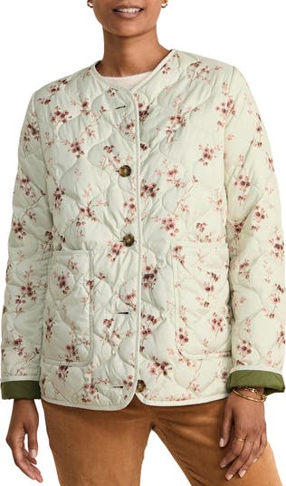 Add a pop of bold style to your everyday basics with this quilted, relaxed-fit jacket flaunting a retro floral print and a contrast lining.