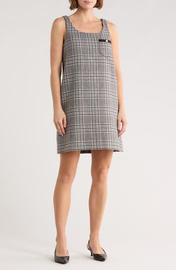 A glen-plaid print brings heritage-inspired charm to this soft wool-blend jumper fashioned in a relaxed shift silhouette.