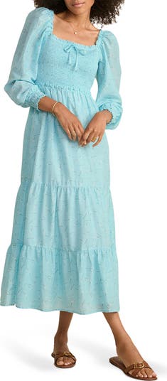Easily transition from the farmers' market to weekend brunch in this midi-length dress framed with volumious sleeves and a ruffled-square neckline.