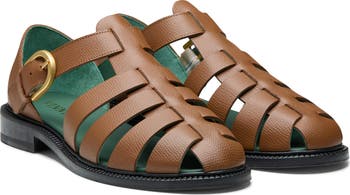 Premium pebbled leather and a shiny buckle refine this classic fisherman sandal set on a cushioned footbed for everyday comfort.