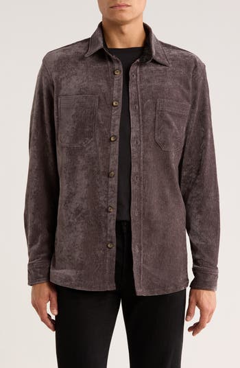 Layer through the seasons in this slim-cut shirt-jacket made from stretchy, lightweight chenille with plush texture and a subtle luster.