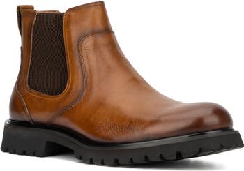 A lug sole adds rugged style to a classic Chelsea boot that is created from smooth leather.