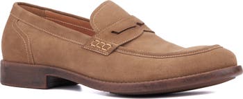 Elevate your wardrobe with an apron-toe penny loafer constructed from soft, burnished leather with a grippy rubber sole.