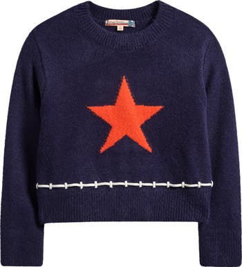 Give them a cozy-cute staple for chilly weather with this star knit sweater featuring contrast stitching.