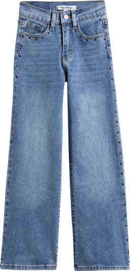 Give your kid instantly cool style with these studded wide-leg jeans cut from perfectly faded stretch denim.