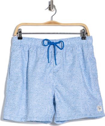 A water-repellent, quick-drying finish makes these boldly printed volley swim trunks a beach-day win.