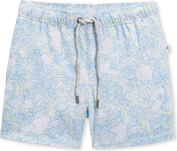 They'll have a blast while making a splash in these quick-drying seersucker volley swim trunks featuring a fun lemon print and comfortable elastic waistband.