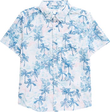 Get your kid ready for beach days with this short-sleeve button-down shirt constructed from stretchy, moisture-wicking fabric for all-day comfort.