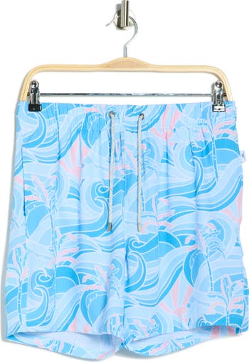 Seersucker Print 4-Way Stretch Volley Swim Trunks