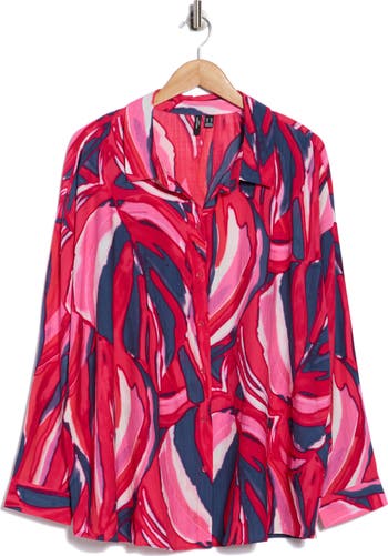 This long-sleeve button-up shirt features a watercolor-inspired print and an airy, fluid drape that feels soft against the skin while offering breathable comfort and graceful movement.