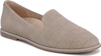 A streamlined profile and loafer-inspired topline distinguish a leather flat featuring built-in VioMotion technology that offers contoured arch support, with shock-absorbing cushioning and a deep heel cup to provide stability and forefoot flexibility.