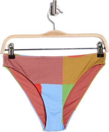 Wide ribbing lends subtle texture to these high-cut bikini bottoms that are ready for some fun in the sun.