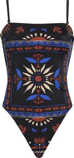 Removable, adjustable straps and a playful print give this one-piece swimsuit the perfect blend of support and style.
