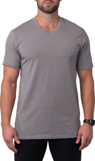 Crafted from premium Egyptian cotton, this elevated V-neck T-shirt is updated with signature branding and side vents at the hem.