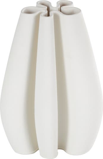 Update your home decor with this fluted ceramic vase that has durable stoppers on the base to keep it from sliding or scratching furniture.