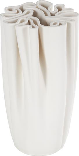 Update your home decor with this fluted ceramic vase that has durable stoppers on the base to keep it from sliding or scratching furniture.