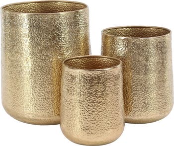 Goldtone Aluminum Indoor & Outdoor Planter with Hammered Design - Set of 3