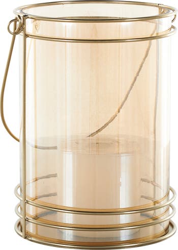 Enhance the ambiance and illuminate your space with this elegant glass and metal candleholder lantern.