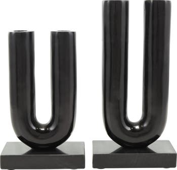 Illuminate your space while adding a touch of elegant style with this pair of candleholders that feature a double-holder design.