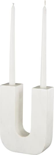 A uniquely shaped candleholder crafted from marble and will hold two taper sticks is the perfect centerpiece for your table, mantle or shelf.