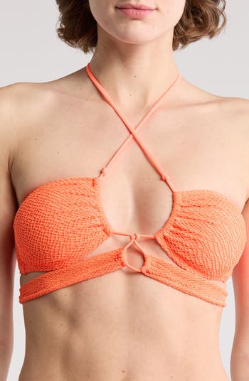 | You'll turn heads and catch compliments in this striking halter-neck bikini top crafted from mesh. |